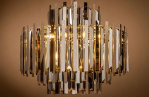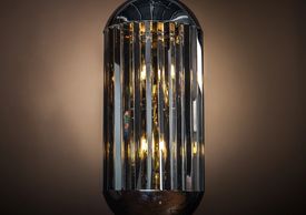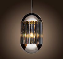 1 light polished nickel frame, clear crystal spike pendant with matching chain. (Image with cold white bulbs). Bulbs are available in the Lamps section