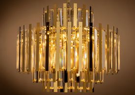 3 Light brass and K9 Crystal Bullet pendant, bulbs available in the lamp section