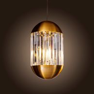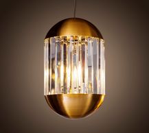 6 Light brass and K9 Crystal Bullet pendant, bulbs available in the lamp section